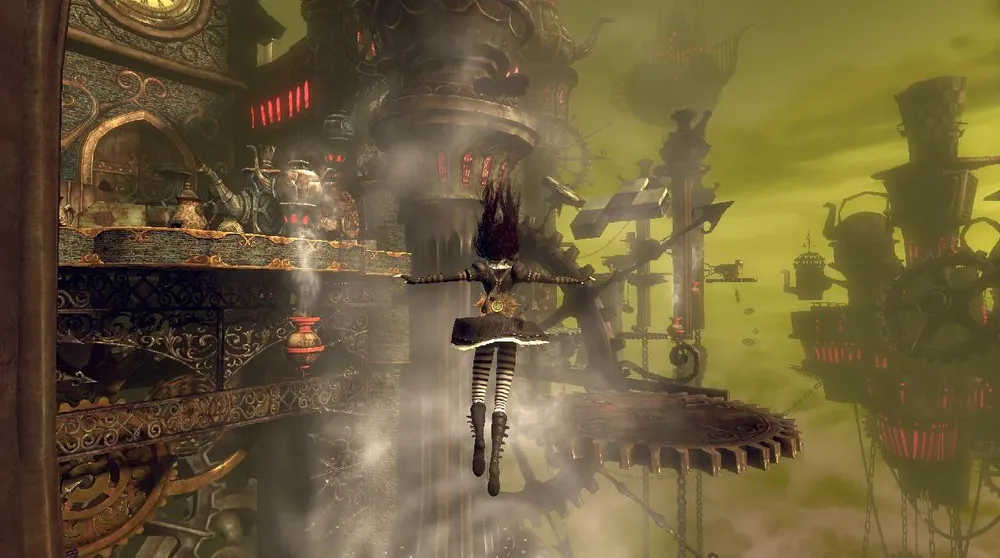 Но я бы не полюбил новую «Alice» так сильно, будь в ней лишь драки да примитивные головоломки. Главная изюминка «Madness Returns» скрывается в самом игровом процессе, затмевая собой и сюжет, и боевую систему. Платформенная составляющая получилась у «Spicy Horse» настолько продуманной и детальной, что прыгать, скакать и бегать по новой Стране Чудес игроку не надоест почти вплоть до финальных титров. «Почти» лишь потому, что многие элементы местных паззлов и задачек сложно решить и преодолеть на клавиатуре, поэтому либо запасайтесь недюжинным терпением, либо подключайте геймпад, а то и вовсе играйте на консолях. На последних, кстати, «Alice: Madness Returns» выглядит несколько хуже, чем на персональных компьютерах. Текстуры высокого разрешения и поддержка технологии «PhysX» все же играют свою роль.