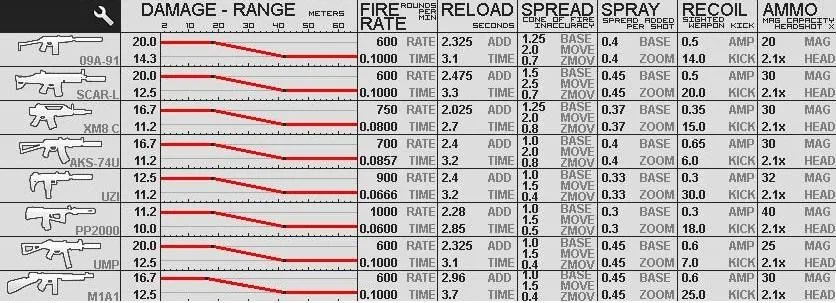 Таблица урона, скорострельности и точности из игры: