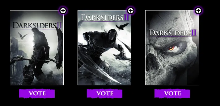 ИздательTHQ предложил игрокам самим выбрать финальный бокс арт Darksiders II Collectors Edition. Выбор Арта можно сделать на оф. страничку в facebook'е