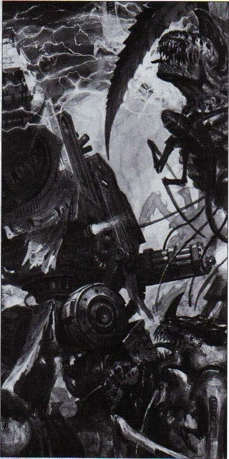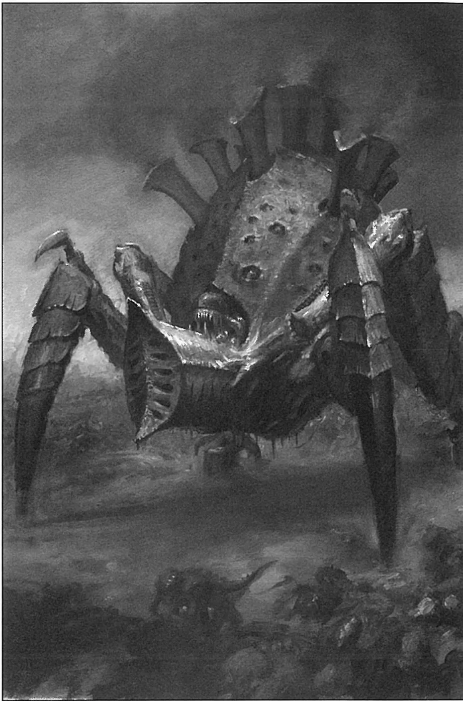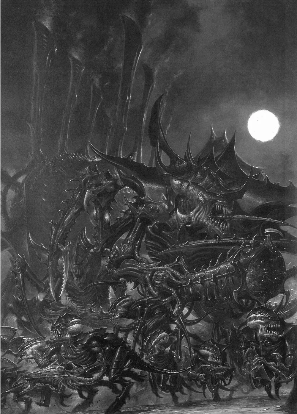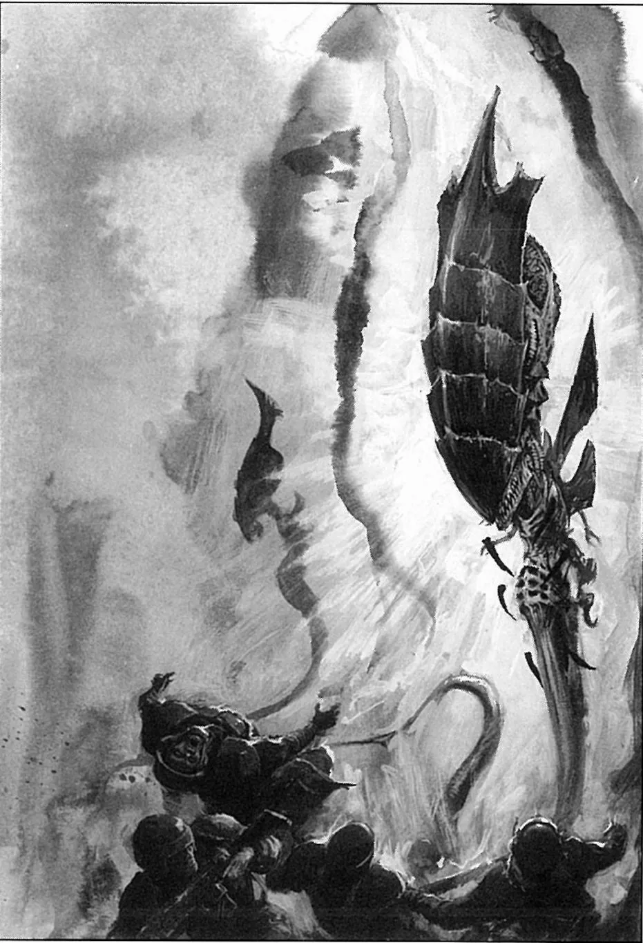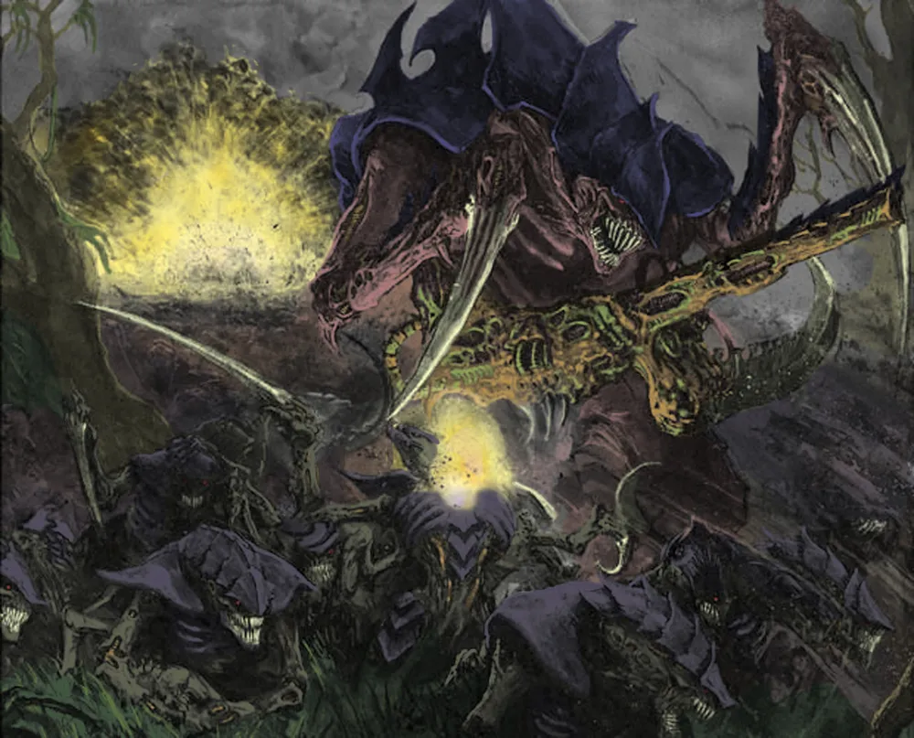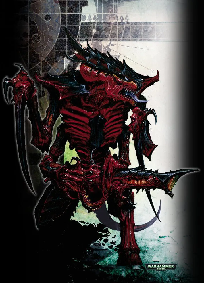 Ещё одна «землеройка», на этот раз огромная, выше карнифекса, тяжелобронированная и испускающая электричество при движении. Замечательное существо, способное вырваться на поверхность и убить пару-тройку танков… и ещё пару-тройку… и ещё вот этих смешных бегающих двуногих. Самое поганое в трайгоне даже не это, а тот простой факт, что по прорытым им туннелям очень любят бегать другие тираниды, так что вылазит-то он один, но скоро эта дырка станет огромной брешью в обороне.
