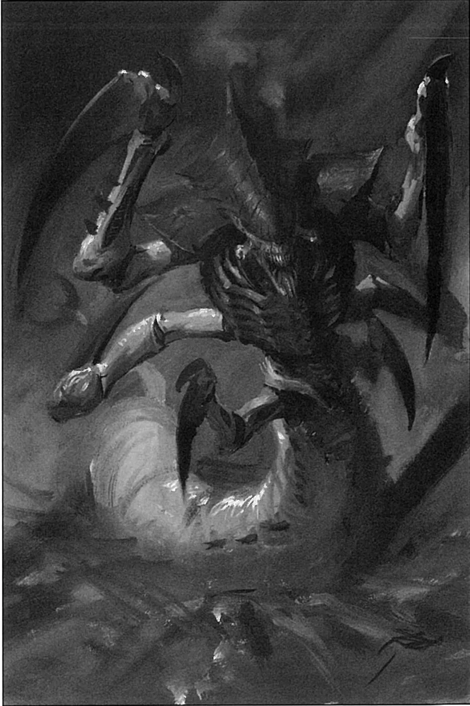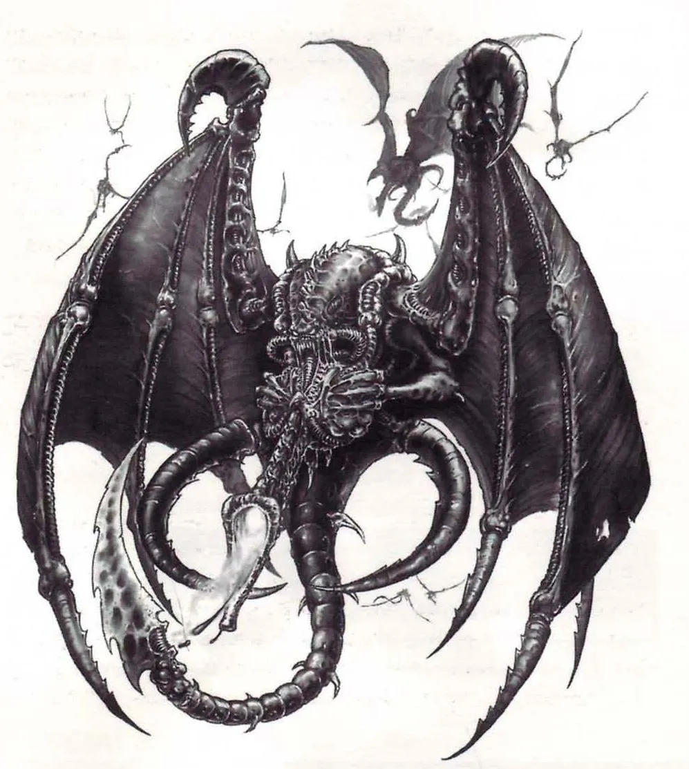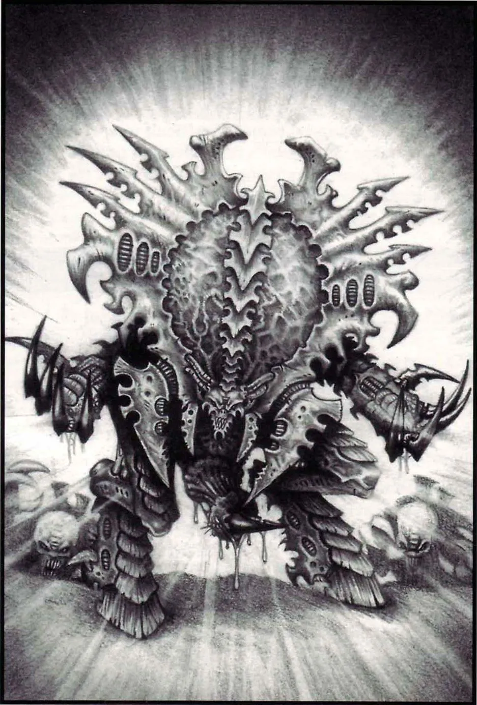 А вот так выглядел зоантроп в ранней редакции, когда он ещё был мутацией воина тиранидов и не умел летать. Хотя голова у него уже тогда была слишком большая, поэтому псионикой он её всё-таки поддерживал.