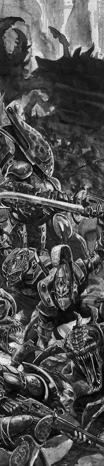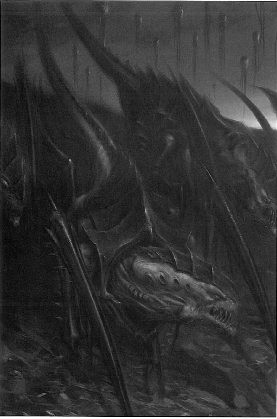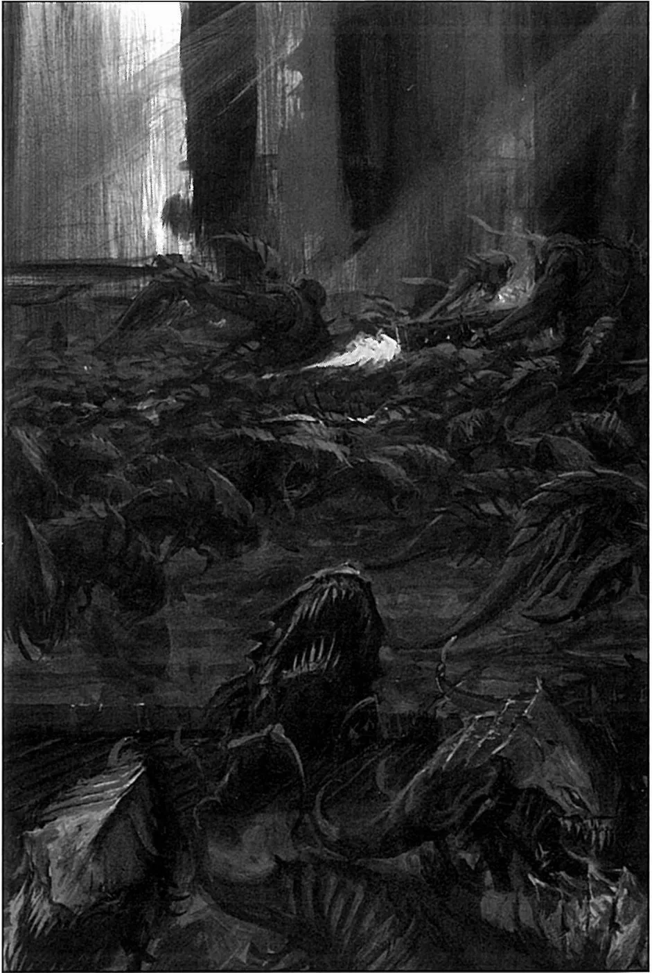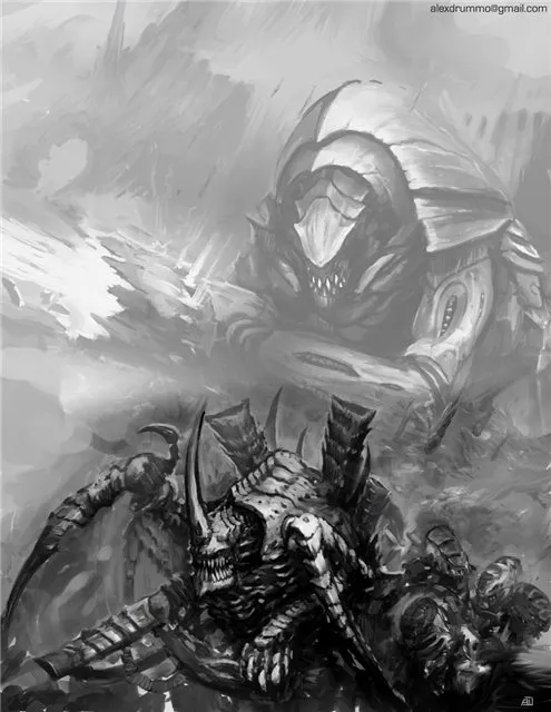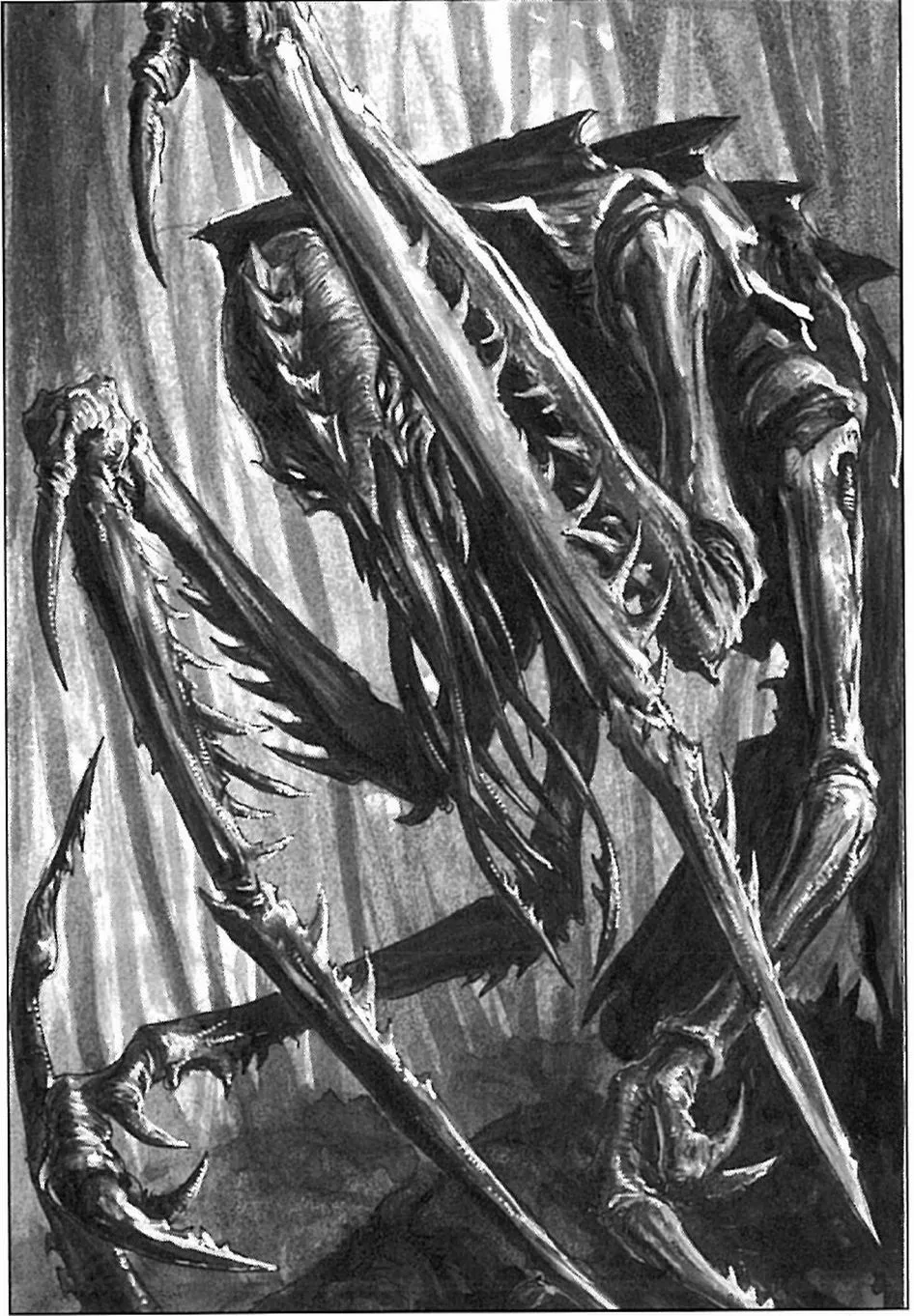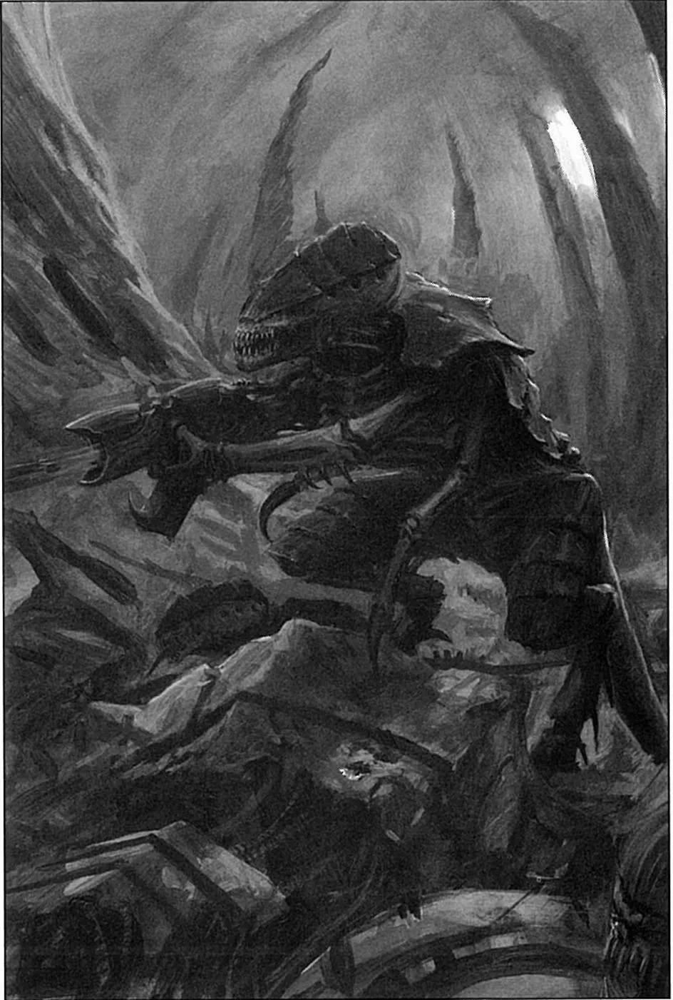 Как я уже говорил, без тирана войско тиранидов становится стадом. Как следствие, его потеря на участке фронта — очень большой косяк. Поэтому его защищают эти милые существа с минимумом мозгов и максимумом брони. Инстинкт самосохранения у охранников тирана отсутствует напрочь, чтобы не мешал им подставляться под удары. Бойцы из них не ахти, но вот телохранители —идеальные. Крайняя специализация вообще отличает все организмы тиранидов, что и не удивительно — их выращивают под конкретную цель. Организмы, своей цели достигнувшие и благополучно издохшие, просто пожираются потом вместе с остальной биомассой планеты. Таким образом, если защитники планеты перебили кучу тиранидов, но потеряли саму планету, в графе «Расходы» Великий Пожиратель может смело писать только «Время».