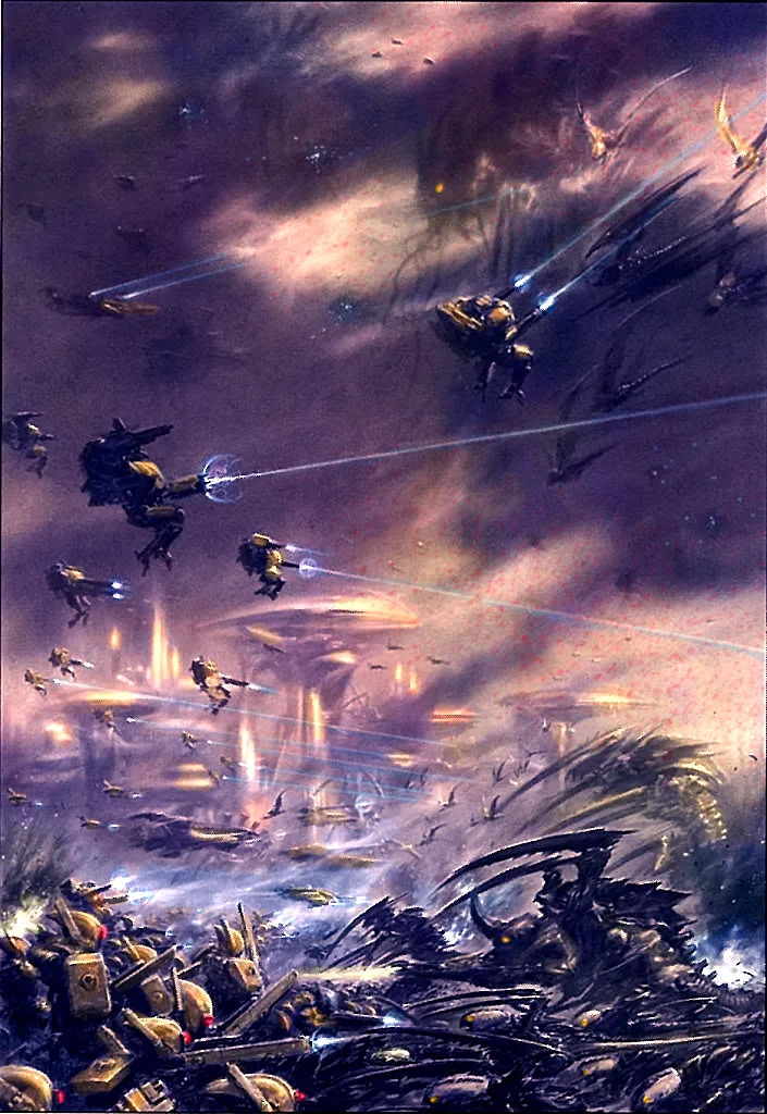 Эльдар тоже не остались в стороне, хотя и не намеренно. Рой-флот Кракен напал на мир-ковчег Йанден, твёрдо намереваясь плотно пообедать. Эльдар отчаянно сражались, но сил живых воинов не хватало… Тогда духовидцы мира-ковчега призвали из Бесконечного Круговорота духи умерших эльдар Йандена, чтобы вселить их в тела повелителей призраков и призрачных стражников. Такого рода деяния для эльдар являются чем-то средним между некромантией и разграблением могил. Однако, сражаясь рядом со своими мертвецами, эльдар всё равно продолжали уступать силам Великого Пожирателя. Мир-ковчег был бы потерян, если бы не возвращение изгнанного за годы до того принца Йириэля, эльдарского адмирала, ставшего пиратом. Уничтожив атакой с тыла силы тиранидов в космосе, он спустился на поверхность родного мира и взял проклятое Копьё Сумерек, по преданию, вытягивающее душу из владельца. С помощью этого проклятого артефакта принц сумел защитить мир-ковчег от тиранидов, но, во-первых, теперь ставший аутархом Йириэль медленно умирает, а во-вторых, медленно умирает и сам мир-ковчег, понесший невосполнимые потери.