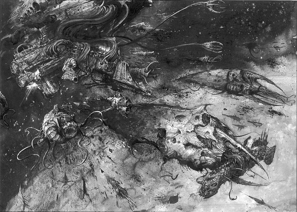 Тираниды не летают через Искажение, как люди. Вместо этого они используют существ, получивших от имперских учёных название нарвалов. Эти тираниды способны «пробивать» направленными импульсом пси-энергии пространство, создавая стабильный коридор, по которому живые корабли рой-флота перелетают в нужную систему. К сожалению, прицел довольно неточный, поэтому уже прибывший рой-флот долгие десятилетия может лететь к конкретной планете на досветовой скорости. Тем не менее, ударная волна от прибытия вызывает мощные землетрясения и тектонические сдвиги на соседних планетах. Ну и ещё одна черта тиранидов — их общее сознание перекрывает связь между реальностью и Искажением. Называется сие Тенью в Искажении, у псиоников от неё начинаются головные боли и полная невозможность пользоваться своей силой, навигаторы не могут видеть Искажение третьим глазом, астропаты не способны передать послание хоть куда-то… В общем, радости от прибытия тиранидов не испытывает решительно никто.