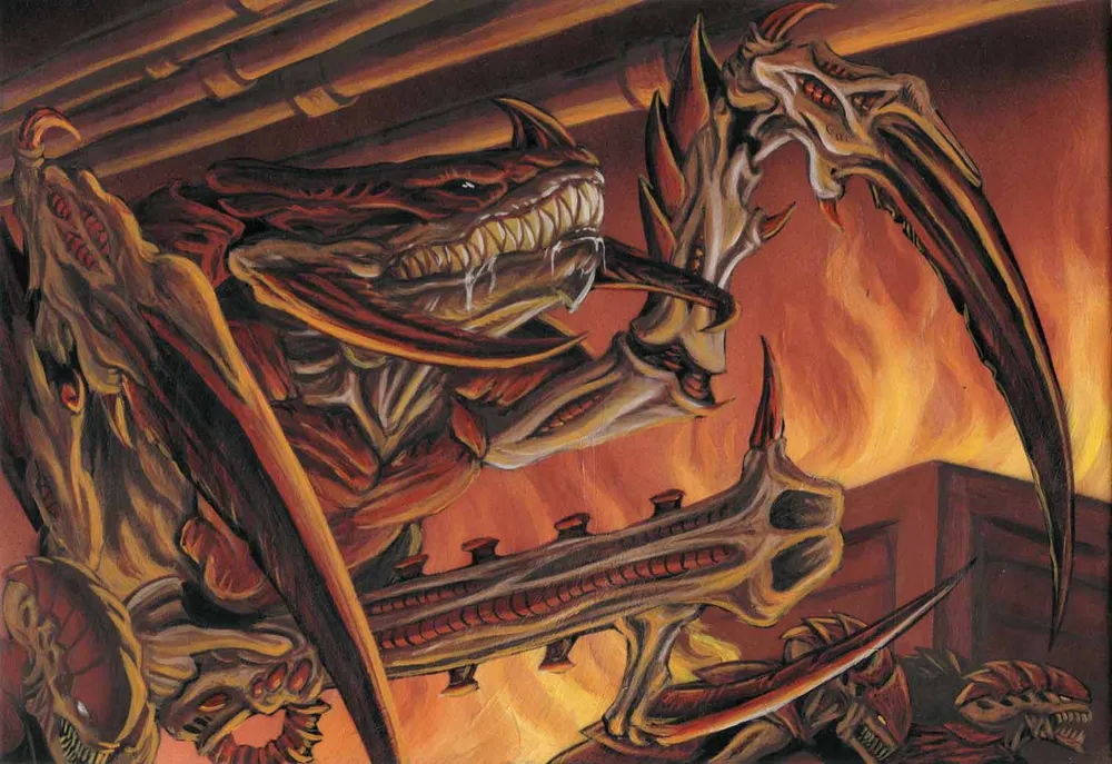 Пироворы, ходячие огнеметы. Существо, которое тащит на себе стреляющую дуру, в основном жрёт трупы, чтобы получить био-массу для переработки в топливо для существа, которое является стреляющей дурой. Что забавно, у второго больше мозгов, и именно оно управляет обоими. Пасть «платформы» сочится кислотой, а «стреляющая дура» выплёвывает огонь на весьма нехемульское расстояние.
