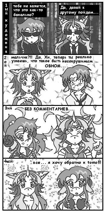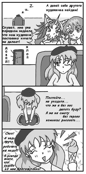 А вот для начала несколько серий первых стрипов. Собственно те, которые выходили в печатном журнале в 2003-2004 годах. Как вы понимаете, глядя на дату, ничего сверхъестественного в плане графики вы там не обнаружите. Но люди говорят, что как минимум должно быть смешно :)