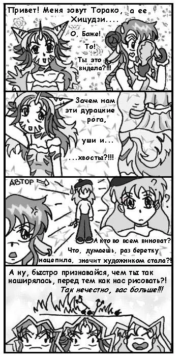 Для журнала были придуманы маскоты и в каждом номере печатались короткие комиксы про них. И хотя журнал перестал выходить, озорные кошкорог Торако и овца Хицудзи настолько полюбились автору и читателям, что продолжили самостоятельное существование и развитие.