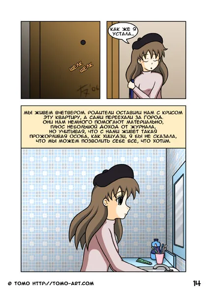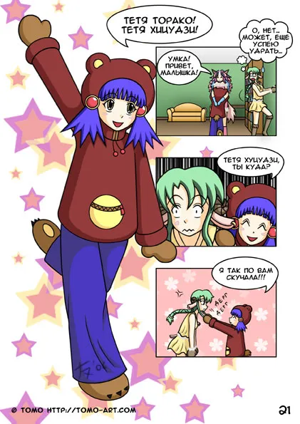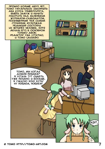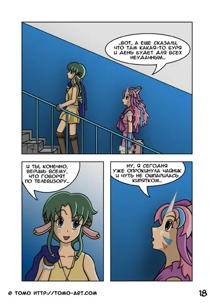 Ниже три главы комикса TO&HI – нулевая, первая и вторая. Это комедийный задел, так что пока можно откинуться в кресле и просто познакомиться с новыми персонажами, а на старых посмотреть немного с другой стороны :)