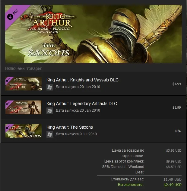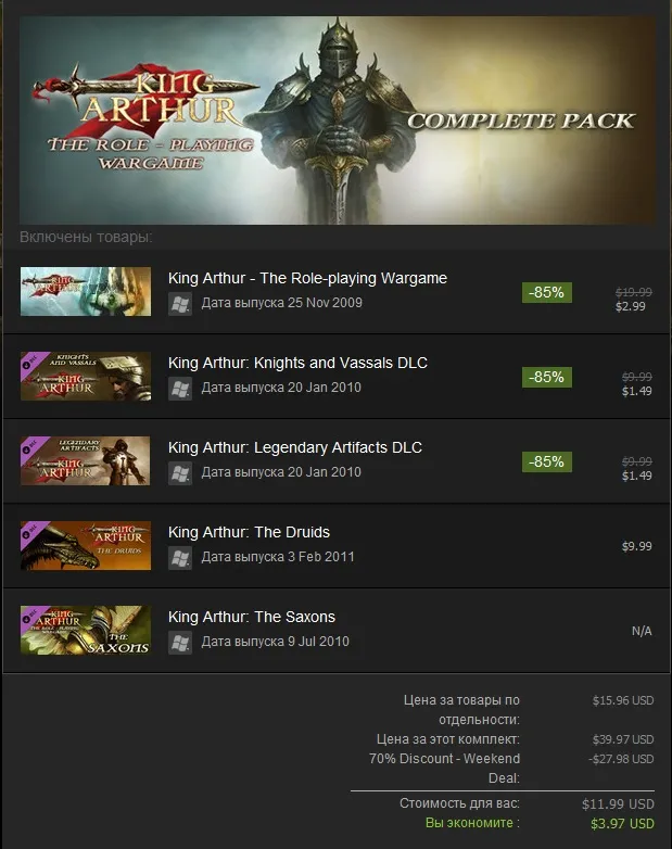 Только на этих выходных в честь выхода DLC King Arthur: The Druids комплект King Arthur: Complete Pack продается в Steam за 1.99 !