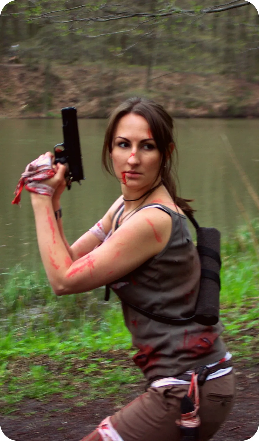 Немного исправленный... Не хватает лука....... Добавили ледоруб, сценическую кровь (театральную), бутафорскую грязь, реальную грязь.... Вообщем вот что получилось: