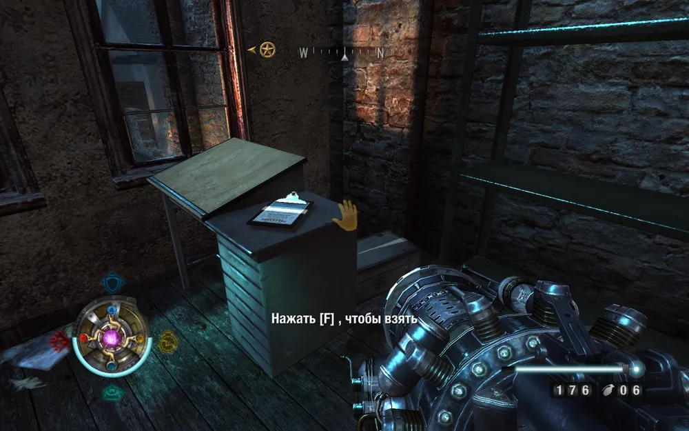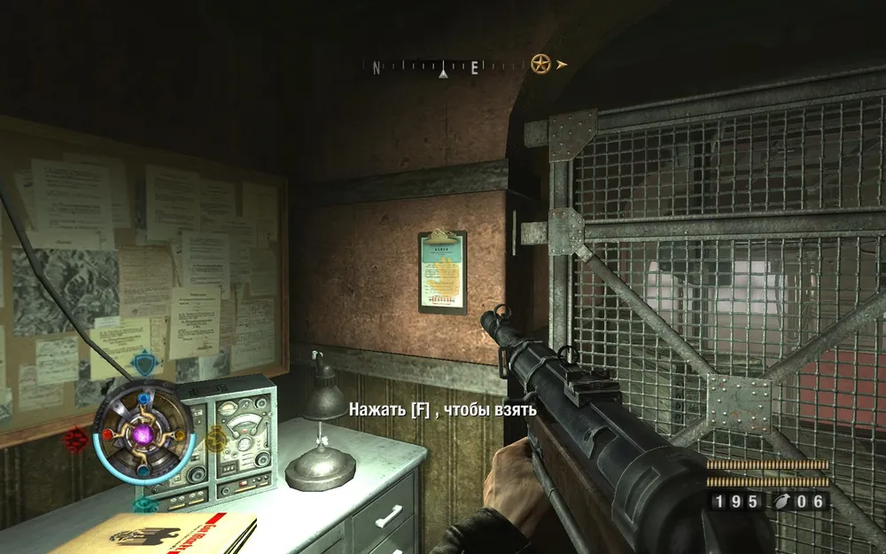 Выходим через маленькое окошко. Берем документы на стене напротив.