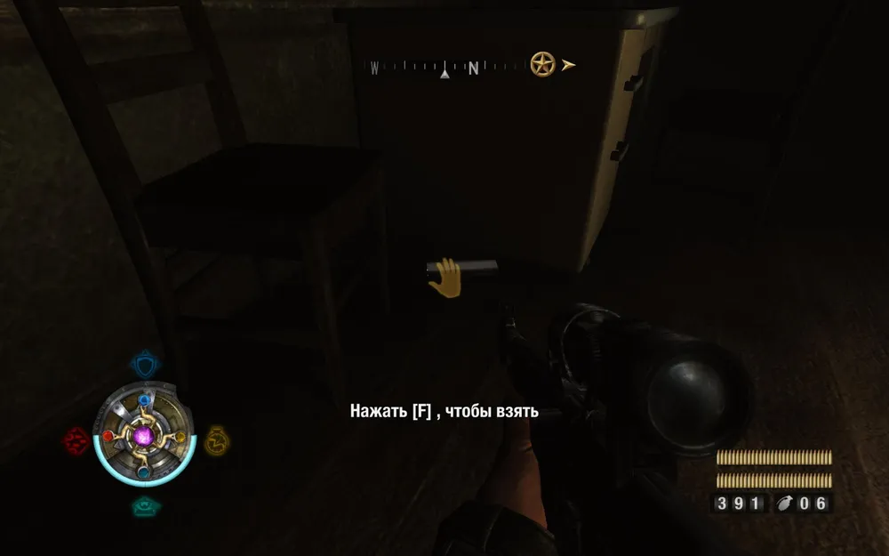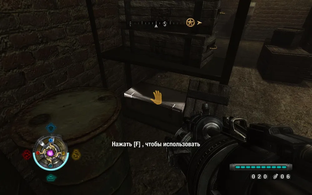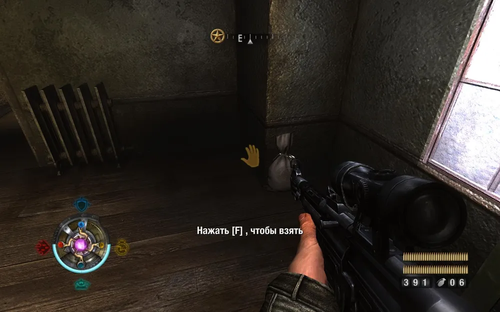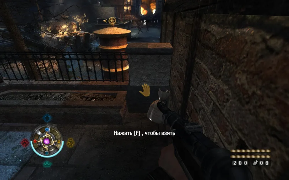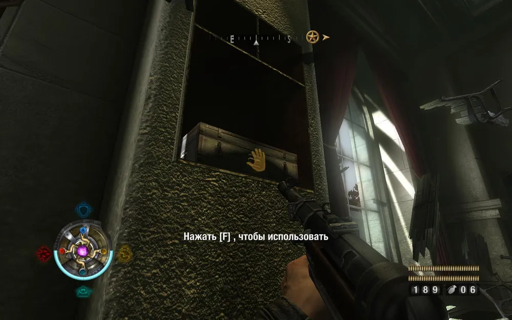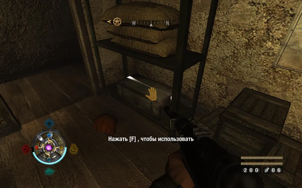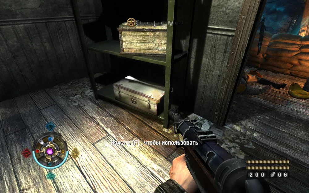 Идем расправляться с пулеметом справа. Поднимаемся по лестнице и заглядываем в закуток слева.