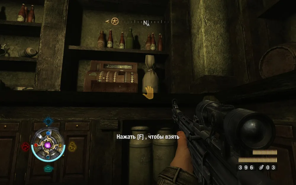 После разборки с патрулем за барной стойкой находим золото.