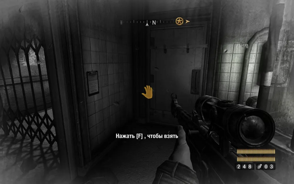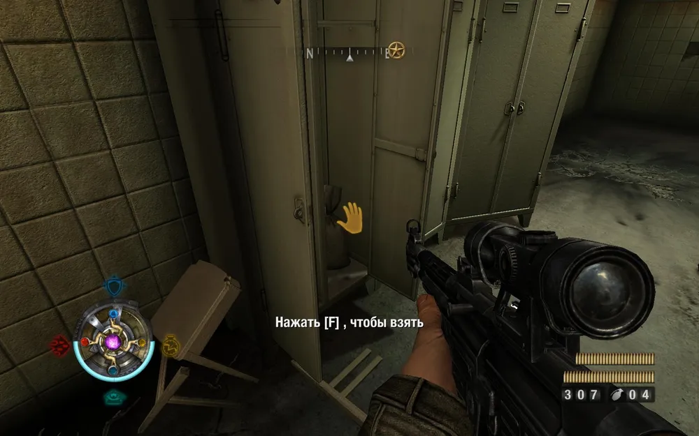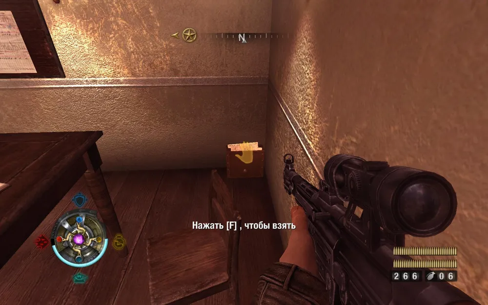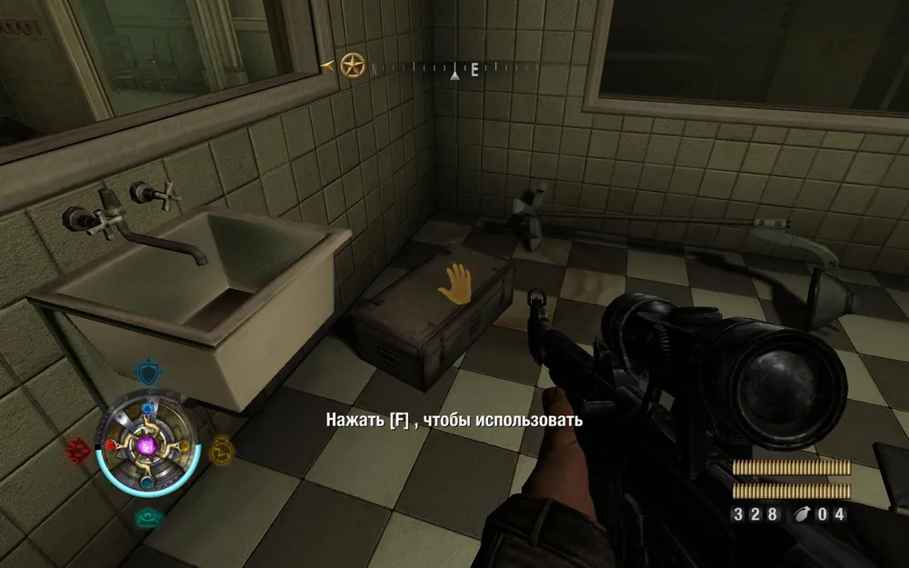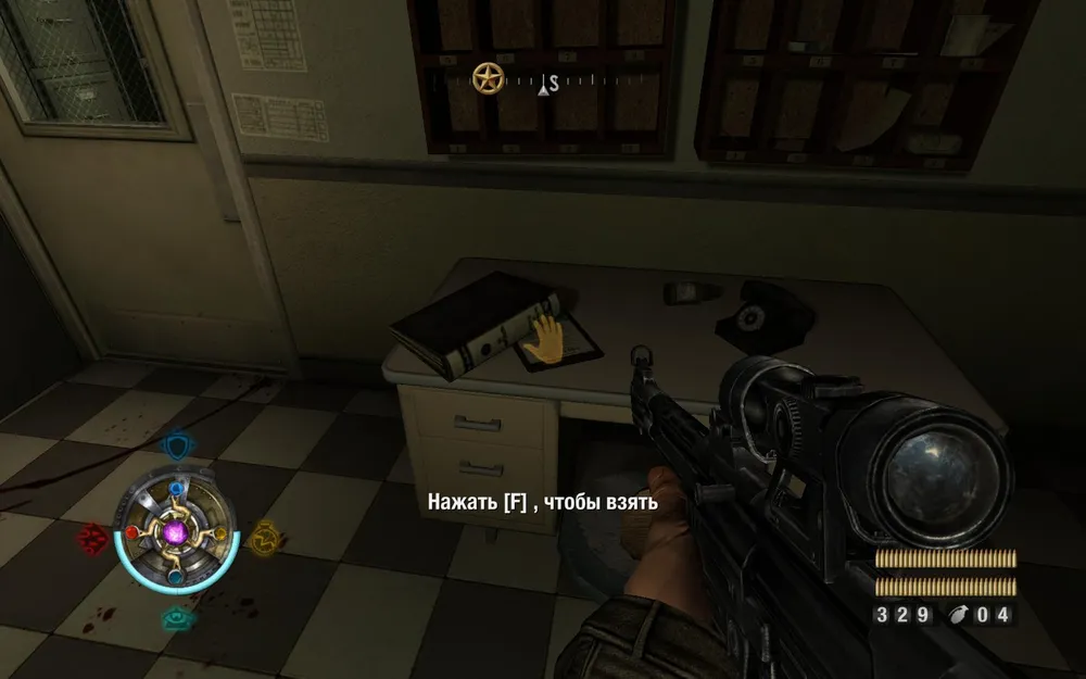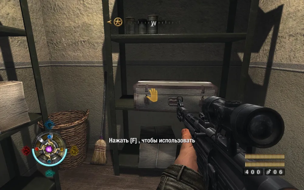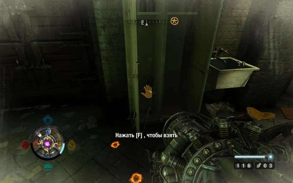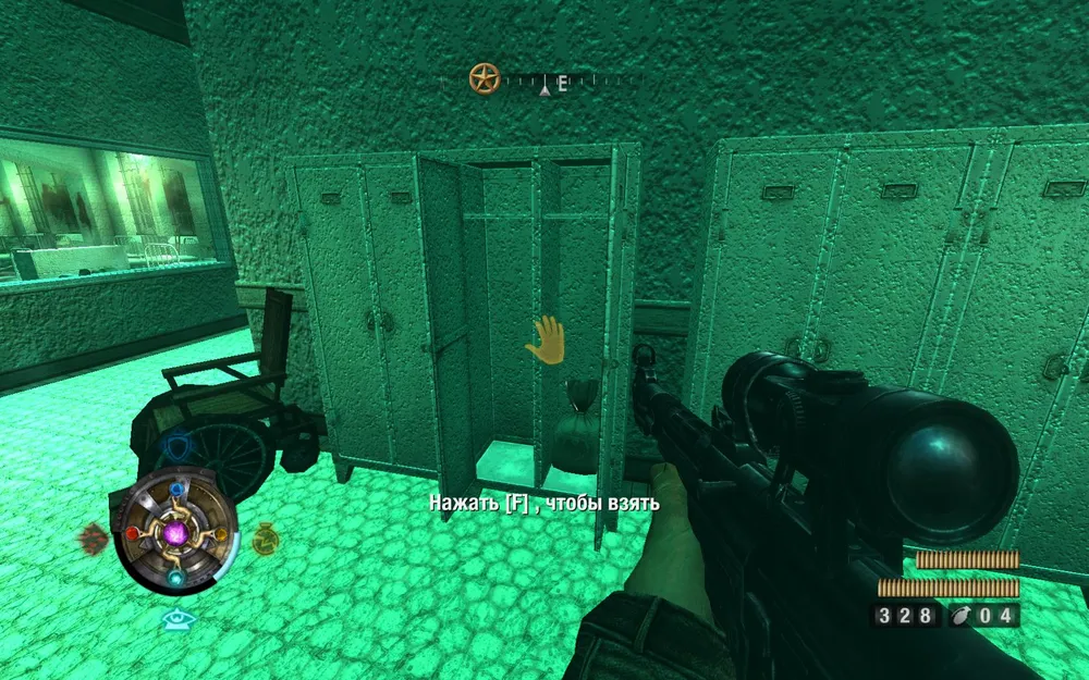 Убиваем психопата (по заданию), возвращаемся к двери на предыдущей картинке. Выходим и справа в шкафу берем золото (оригинально, да?).