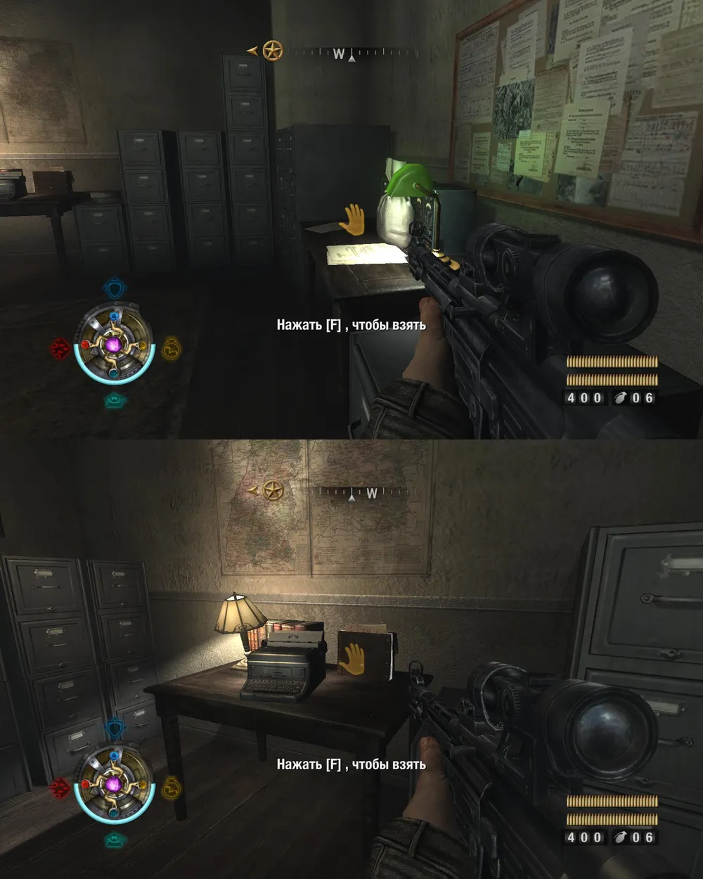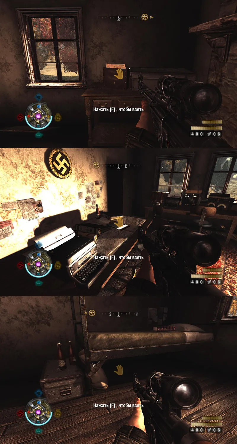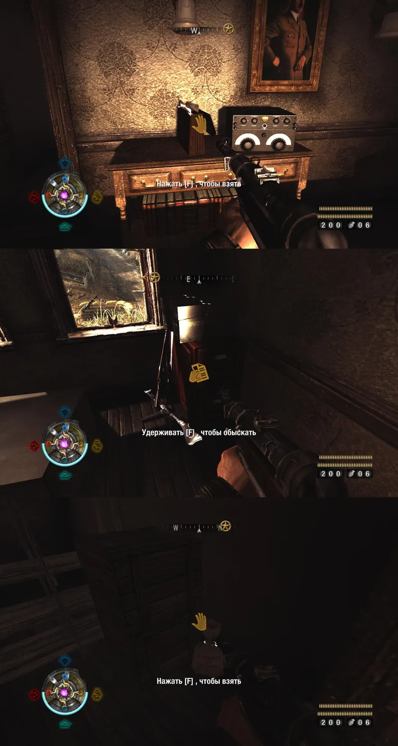 Идем дальше. В одном из трех шкафов (не пропустите, но если что, то над очередным пулеметом) золото.