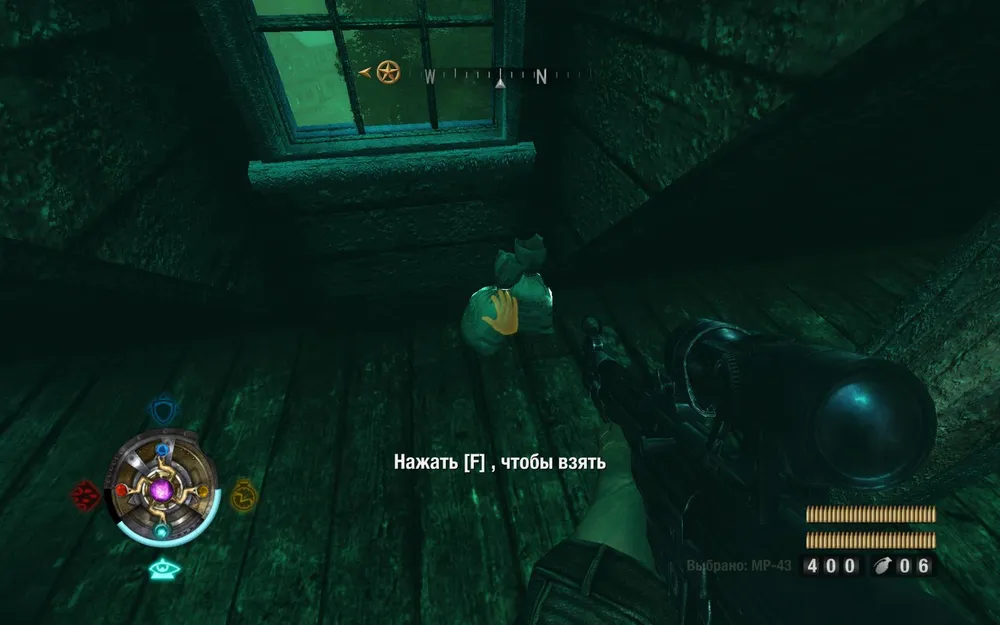 Идем дальше. Поднимаемся на чердак (не пропустите, по сюжету придется лезть). В углу, противоположном тому, откуда мы вылезли, нас ждет сейф с золотом.