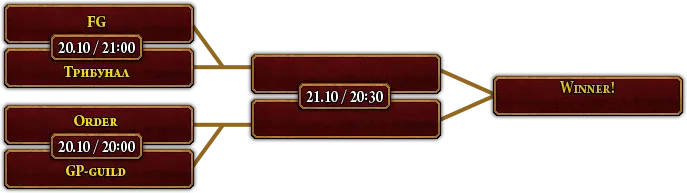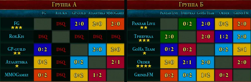В минувшую пятницу завершилась групповая стадия первого турнира из серии «Panzar League», записи некоторых трансляций Вы сможете найти здесь. Первые места в группе А заняли команды FG и GP-Guild, в группе В Трибунал и Order. Именно эти 4 команды сойдутся в ожесточенной схватке в полу-финале в 20:00 20-го октября. В играх плэй-офф командам предстоит биться уже на более сложных картах: "Каменоломни гномов", "Лагерь орков", .т.к. на этих картах одна из команд атакует, а вторая обороняется, соперники будут меняться местами. В случае, если обе команды выиграли по одному разу и не определили кто из них сильнее, они играют дополнительную карту "Каскады павианов". Расписание матчей ниже.