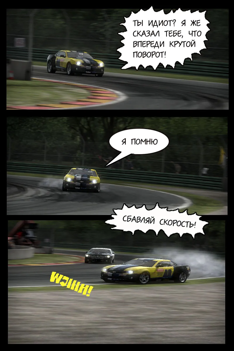 Игра понравилась, сегодня почти весь день провела за рулем =) Под впечатлением от нового nfs вдохновилась на небольшое творчество. Рисовка, естественно не моя, только раскадровка и текст. Но все равно вроде как комикс.