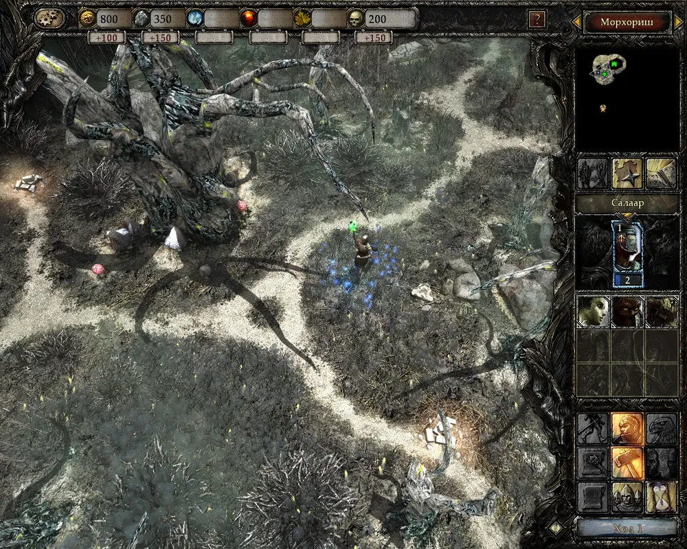 "Как мы уже отметили выше, для "Перерождения: Disciples 3" был создан специальный механизм, который позволил нам высадить по всей карте траву. В игру мы ввели совершенно новую, "шейдерную", густую растительность нескольких типов: разной высоты, различных видов (рожь, высокая трава, низкая трава, несколько видов цветов, трава для дорог и троп). Естественно, все эти виды травы были сделаны отдельно для каждого типа поверхности. Помимо всего перечисленного, игровая трава реагирует на происходящее вокруг: колышется на ветру, приминается при перемещении юнитов, разлетается от стрел, ударов мечей и под воздействием магии.