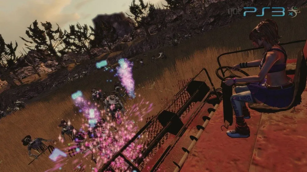 А мини-игры - то, что чаще всего заставляло меня в процессе игры верещать от радости. Мало в какой еще игре можно под грибами устроить кармагеддон, рассекая по полю на огромном комбайне и сотнями давя зомби, например. Летать на бензопиле, косплеить турель из игры жанра tower defence... развлечения такого рода попахивают легким безумием и неплохо разбавляют процесс шинковки мертвяков, так что я даже рискнула бы назвать геймплей в меру разнообразным. Разнообразным настолько, насколько он может быть таковым, если говорить о слешере.