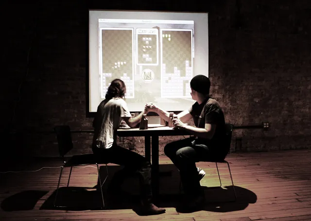 Игроки занимают свои позиции на столе и, внимательно наблюдая за происходящим на экране, силой и быстрыми движениями пытаются управлять своей игрой и одновременно мешать противнику. По-настоящему победить соперника, как в стандартном армрестлинге, придавив его руку к столешнице, не получится, а вот добиться того, чтобы он первым проиграл в тетрис вполне реально.
