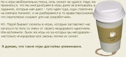 Последнее по упоминанию, но не по значимости - игры не обязательно претендуют на САМЫЙ ТУПОЙ сюжет - что вспомнил, то и вставил :)