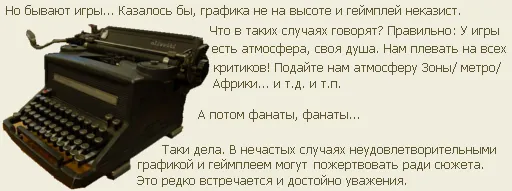 Все мы лгуны и предпочитаем оправдываться, что, мол, главное для нас в играх не графика, а геймплей. Геймплей - вот ради чего мы играем в игры и покупаем новейшее железо, выставляем сглаживание на максимум и покупаем всякие 3d очки, а уж графика - фи, пристройка для людей без воображения!