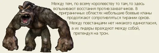 Если вы не играли в предыдущие части, краткий экскурс. Есть раса людей под предводительством Робара ХРЕН ЗНАЕТ КАКОГО, есть раса орков под предводительством Кого То. Пришла зима, у орков отмерзли яйца - надо бы напасть на людей. Увидев, что у них неплохо вышло, орки решают начать полномасштабный захват.