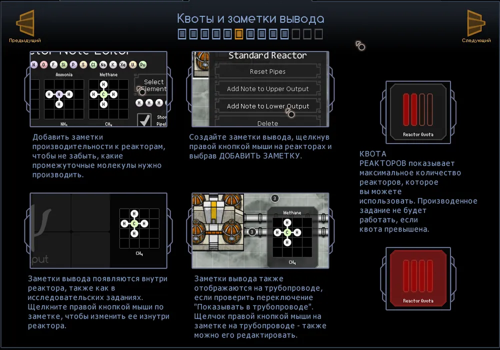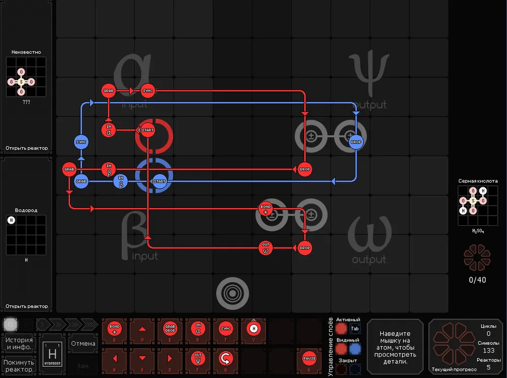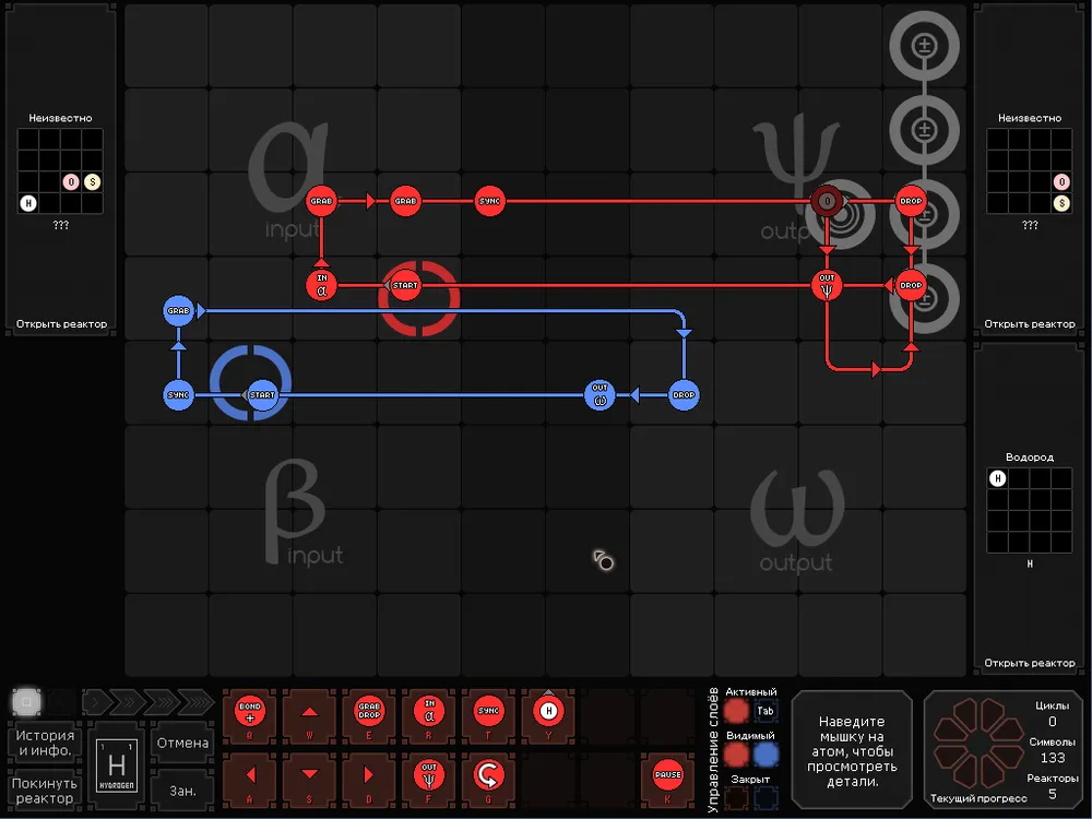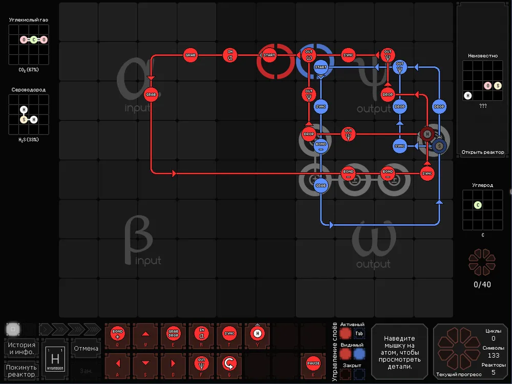 Мне не нравится, что в игре отсутствует возможность в неких заметках (блокноте) расписать ряд реакций, по которым, потом можно проводить обработку получаемого сырья. Да, есть возможность записи выходящих из реактора, продуктов – молекул и атомов, их место расположение в зоне выдачи, а потом и получения, но этого мало.