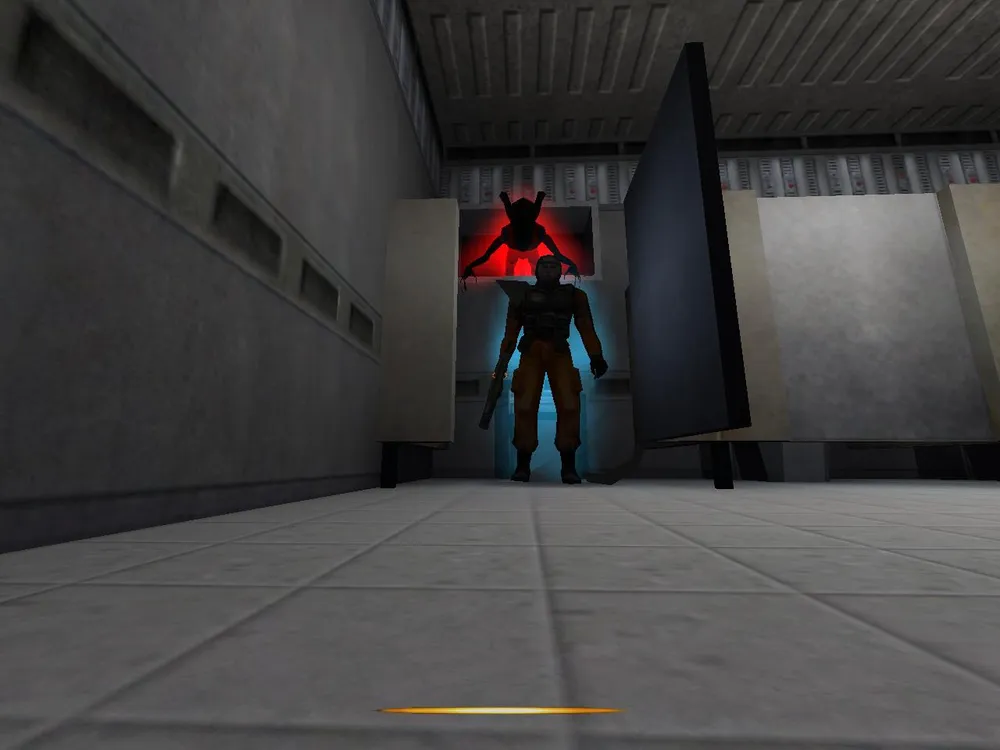 Прыгаем вниз и ломаем турель, внезапно появившуюся прямо над нами. Бежим по коридорам, убивая синтетиков, солдат и ученых, последних лучше использовать как средство лечения, и попадаем в зал. Уничтожив панель контроля дверей, находящийся под правой частью лестницы, лезем в туннель и, добежав до конца, смотрим ролик.