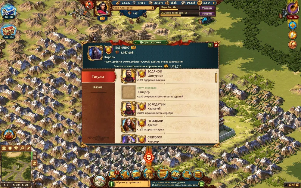 Кроме того, глава страны заведует казной, которую наполняют игроки налогом - золотыми слитками. Последние тратятся на усиление армии, различные баффы, причем они бывают личными (действуют на одного геймера) и общими (влияют на все королевство).