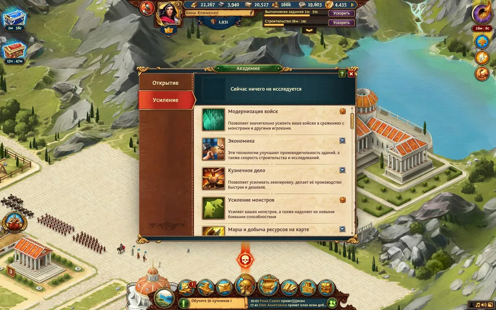 ● Академия - усиливает войска, экономику, изучает различные технологии;