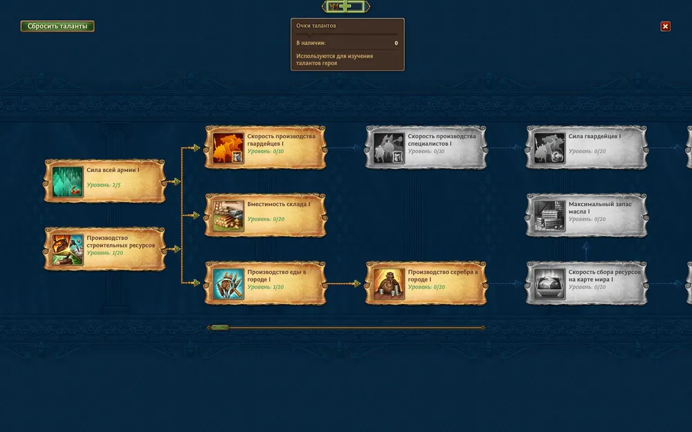 ● При получении нового левела пользователь получает два очка таланта, которые он тратит на развитие своих навыков.