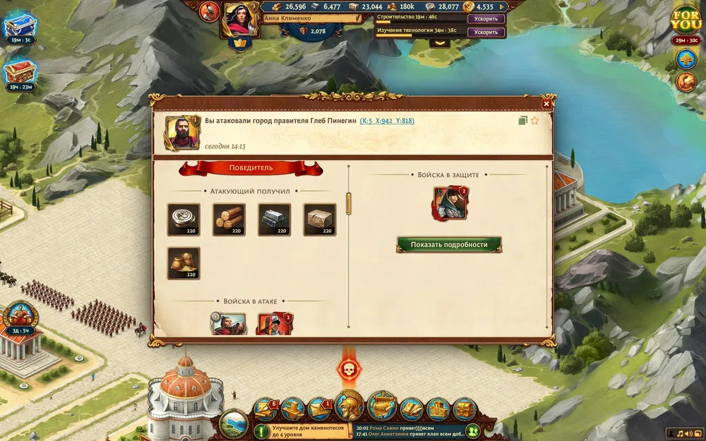 Ноу-хау “Триумфа” состоит в том, что теперь нападать на неприятеля можно не только соло, но и вместе с кланом. Сам бой проходит в автоматическом режиме и не требует участия со стороны игрока. В случае победы вы получаете ресурсы и опыт.