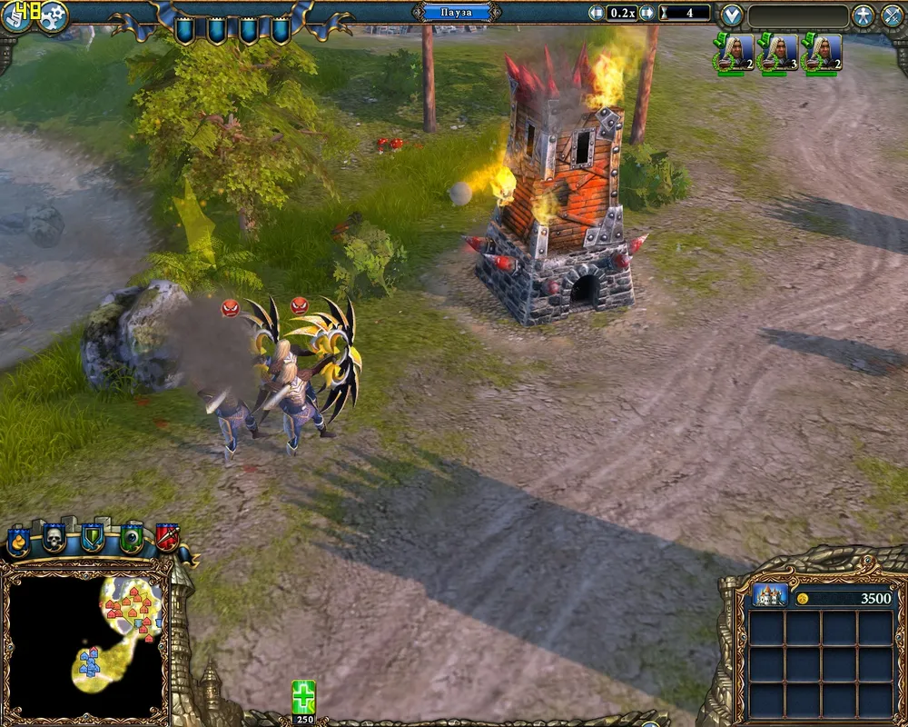 Забавный вариант её начала – вызвать троих лордов и атаковать город гоблинов, находящийся в северо-восточном углу. Отборные бойцы смогут не только разрушить башни, но и уничтожить все гоблинские строения, включая храм!