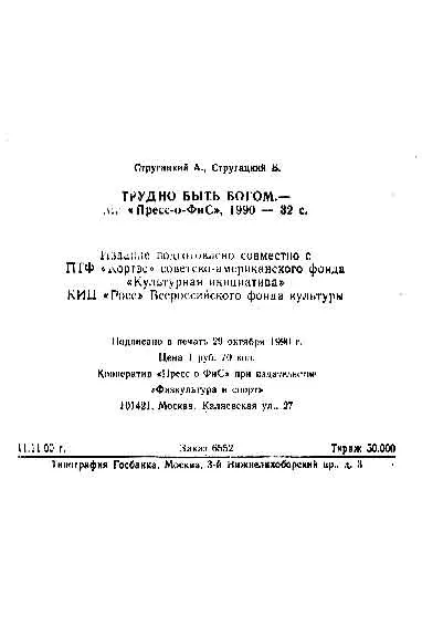 Трудно быть богом (М., "Прес-о-ФиС", 1990)