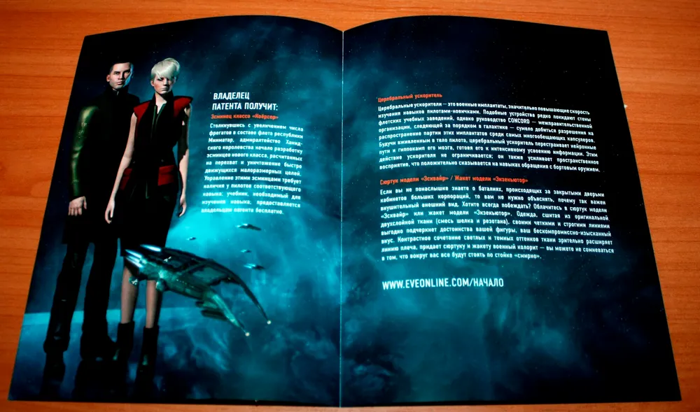 История мира EVE продолжается, и Патент Капитана — это возможность сохранить на полке вселенную EVE Online образца 2011 года. Кто знает, что случится там через пять, через десять лет. Если кто-то из ваших друзей всерьез строит свою жизнь в далекой галактике, а у вас нет возможности заказать модели кораблей из EVE Store, подарите ему Патент Капитана. Артбук и саундтрек оценят все игроки, а ключ активации в этом случае наверняка достанется человеку, достойному вершить судьбы галактики. Может быть, вам?..
