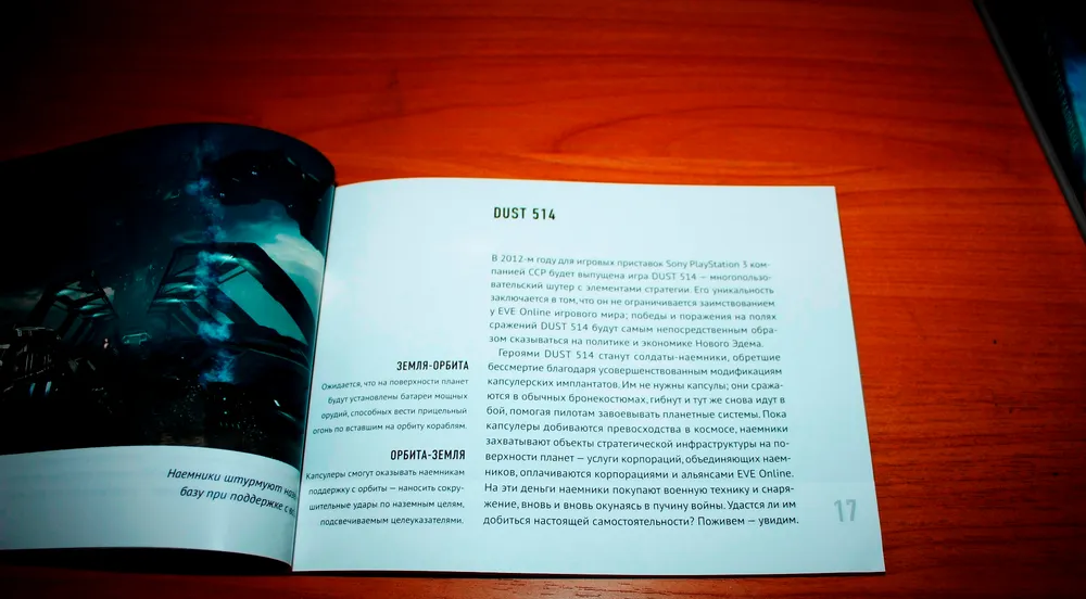 В противоположность руководству, артбук расказывает об истории мираEVE Online: "Мечты о Будущем".
