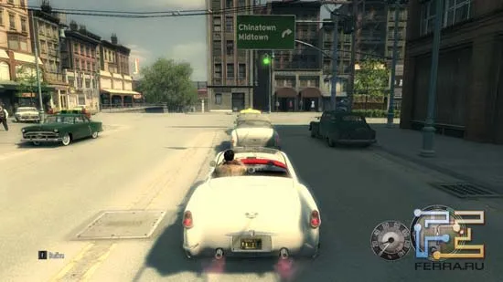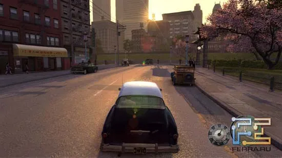 И вот настал день «Ч». Пережив несколько задержек премьеры, переварив масштабную рекламную акцию и с мыслями только об оригинальном шедевре все сменили место своей прописки на Эмпайр-Бэй. Который оказался совсем небольшим – по размерам американский город, списанный с Нью-Йорка и Сан-Франциско 1950-х годов, уступает практически всем мегаполисам современных «песочниц». Куда там до Сан-Андреаса – проехать вдоль и поперек Эмпайр-Бэй можно всего за каких-то пять минут – и это останавливаясь на всех светофорах и соблюдая местный скоростный режим, за нарушение которого копы тут же садятся на хвост. Впрочем, даже такой небольшой кусочек послевоенной Америки радует своей детализацией и вниманием к деталям – лучи солнца бьют в объектив, порошащий снег аккуратно ложится на автомобили, из колонок хрустит джаз, пешеходы спешат по своим делам.