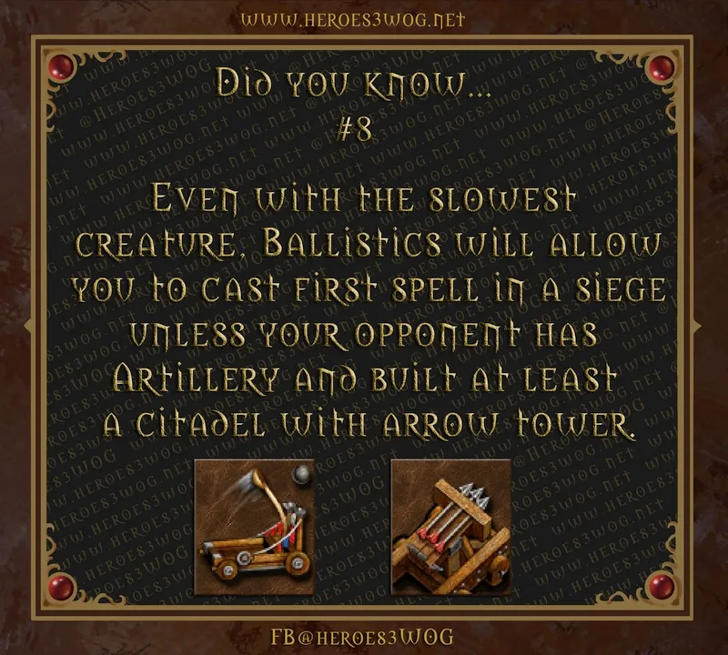 В осадном бою навык Баллистика позволит применить Вам магию первым,