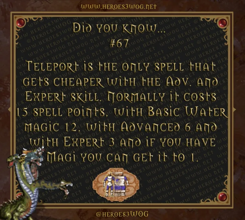 Наличие Мага в армии снизит стоимость заклинания Телепорт до 1 очка.