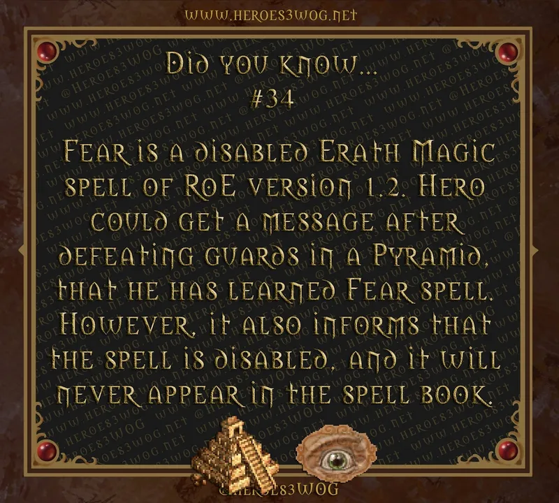 В версии 1.2 «Возрождения Эрафии» заклинание Страх отключено.