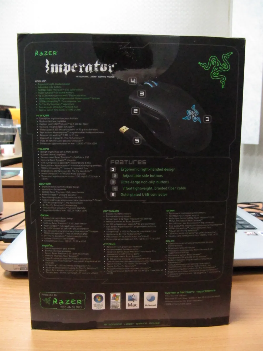 Коробка была вполне стандартной для Razer. Все на месте: высококачественная полиграфия, знаменитый матовый картон, откидная музейная крышка.