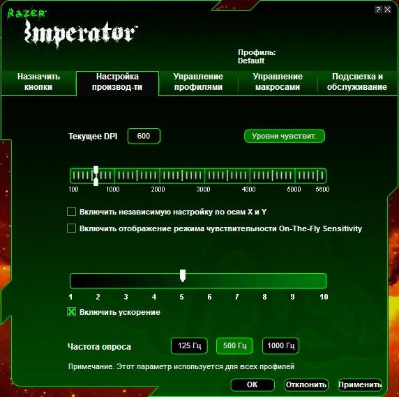Ладно, расквитались с прошивкой, залезаем в наш основной инструмент настройки и тихонько сползаем под стол. Кастомизации подвергается практически все: от классической настройки степенией чувствительности до включения/отключения подсветки, чего мне ох как не хватало в Тарантуле. В общем, смотрите дальше сами.