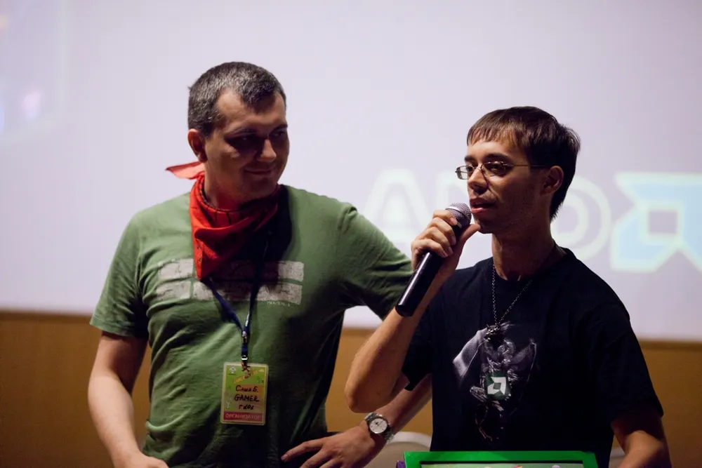 А поздравить победителя на сцену поднялся Юрий Михайлов - PR-директор компании GameNet, который и вознаградил Антона ака @tonik дипломом и игровой видеокартой Sapphire Radeon HD 6770 с уникальной системой охлаждения от компании AMD.