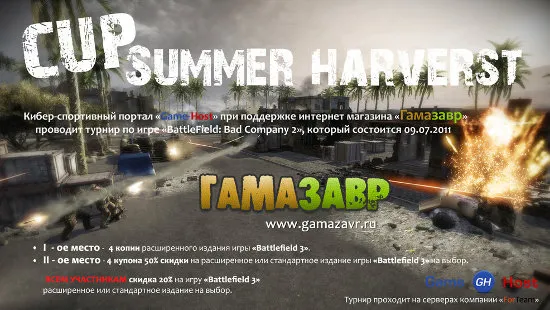 Магазин цифровой дистрибуции Гамазавр и кибер-спортивный портал Game-Host.ru рады анонсировать турнир по Battlefield Bad Company 2.