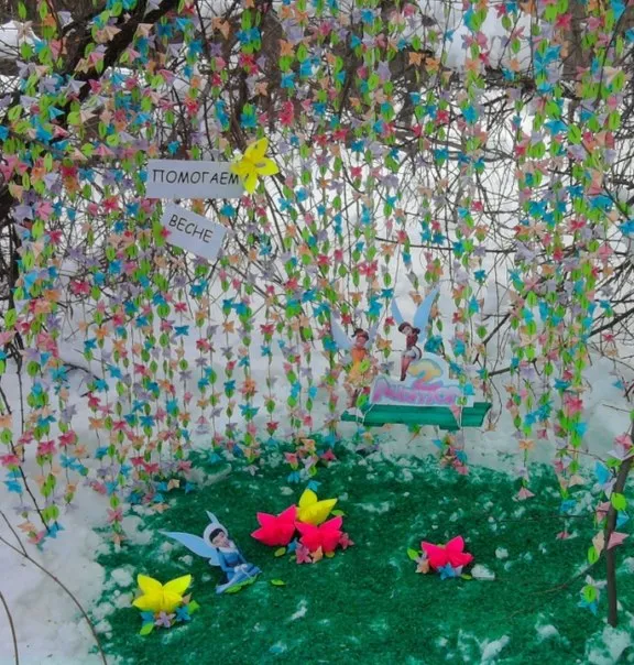 В конкурсе "Помоги весне" участники украшали все вокруг цветами, игрушками и рисунками, чтобы поскорее прогнать зиму.