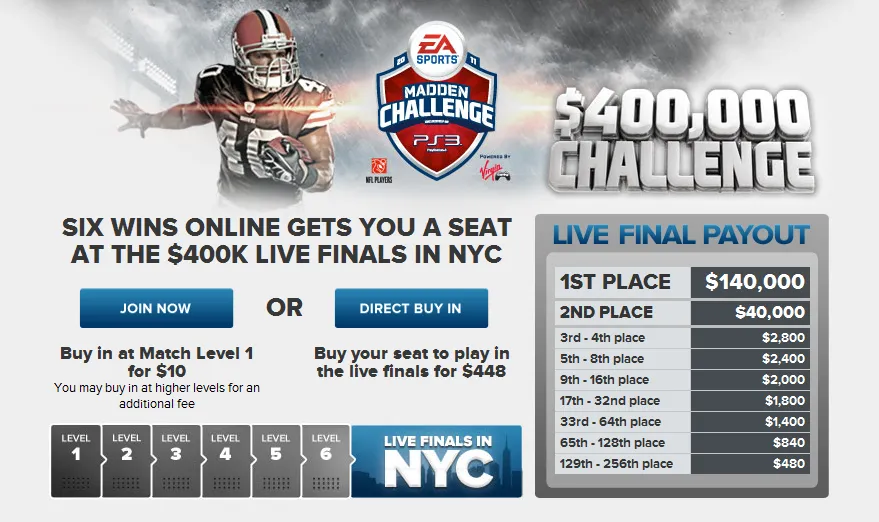 Игровые консоли отхватили довольно большую часть игрового рынка во всем мире. Однако очень и очень мало киберспортивных дисциплин проходит на данных платформах. Компания EA совместно с Virgin решили изменить ситуацию. Так был анонсирован турнир с призовым фондом в 1 000 000 $ США, участие в котором может принят любой владелец консоли PS3.