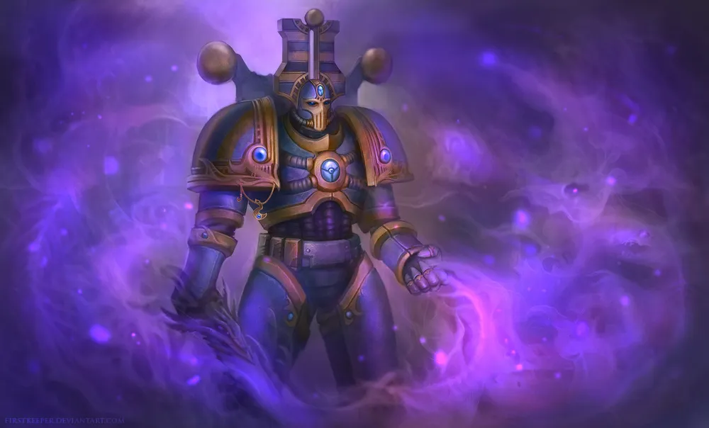 Примарх Тысячи Сыновей - Магнус Рыжий - выделялся своим ростом даже среди примархов. А если точнее - он был самым высоким из них. Легко заметить, насколько он выше терминаторов Мистических Скарабеев, которые тоже отнюдь не карлики. Дело в том, что Магнус был магом, причём сильнейшим магом Империи того времени. Он уступал только Императору. И сила его была столь велика, что даже тело лишь частично являлось материальным, а частично состояло из энергии Искажения, и в зависимости от душевного состояния примарха его рост мог меняться очень сильно - от более-менее обычных размеров и до гиганта, не сильно уступающего титану класса "Полководец"
