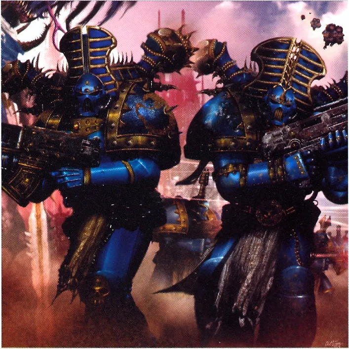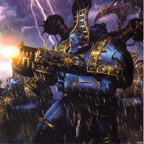 После Ереси Тысяча Сынов вовсе не отказалась от штурмовиков как таковых – более того, их боевую доктрину довели до абсолюта. Теперь эти бойцы в ближний бой стараются не вступать вообще – усиленные Хаосом болтеры являются очень весомым аргументом в спорах на дальних дистанциях. Вполне в духе общей тактики Тысячи, кстати. Главным же изменением во внешнем виде стали опять-таки прыжковые двигатели – если раньше в их очертаниях только угадывались крылья скарабея, то сейчас их облик уже не оставляет никаких сомнений. А из того, что для воздушных атак Тысяча использует именно штурмовиков, а не хищников, можно сделать вывод, что с Ночными Владыками они не сотрудничают – и своих сил хватает.